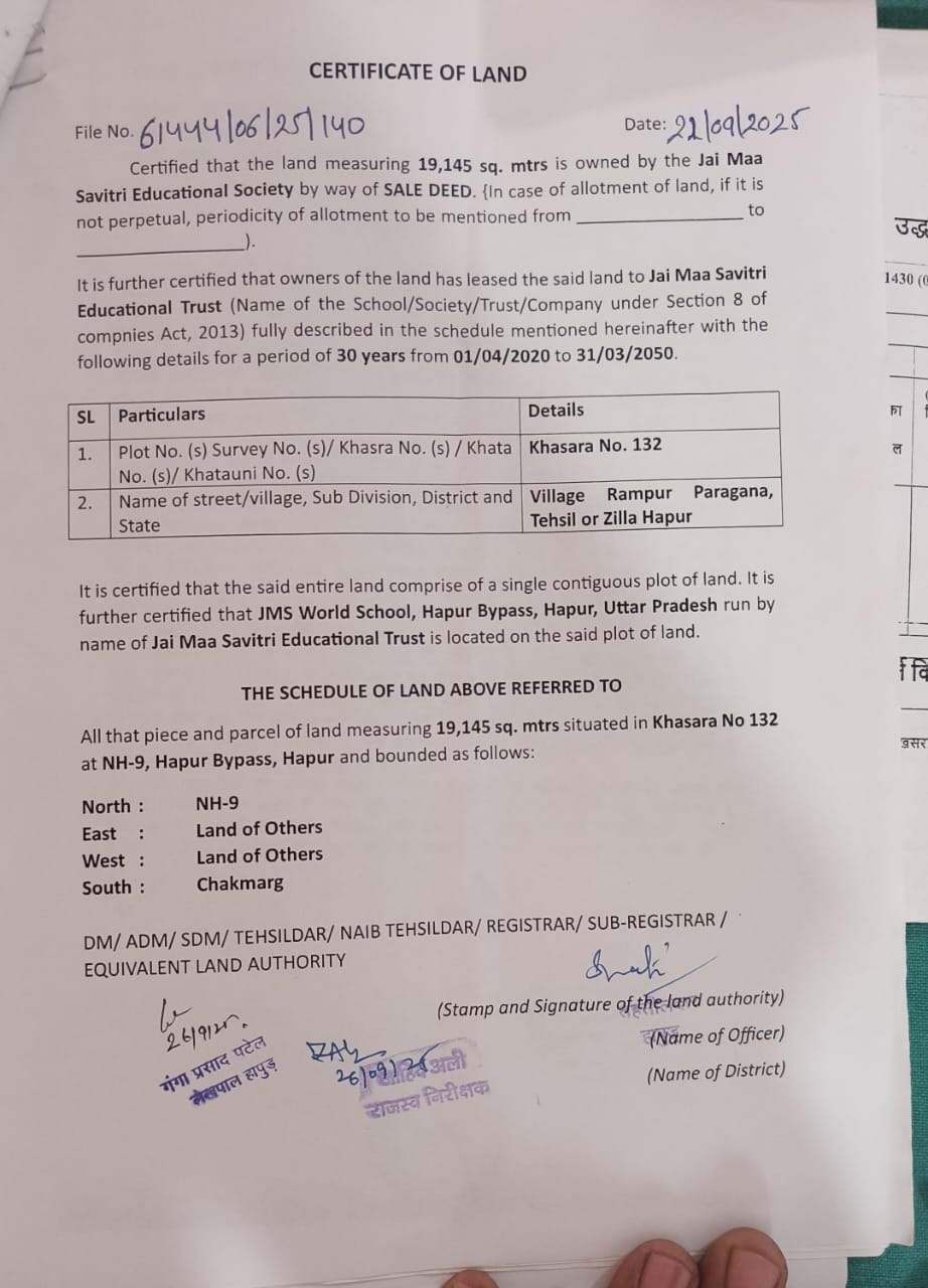 UPDATED LAND CERTIFICATE – LAND CERTIFICATE